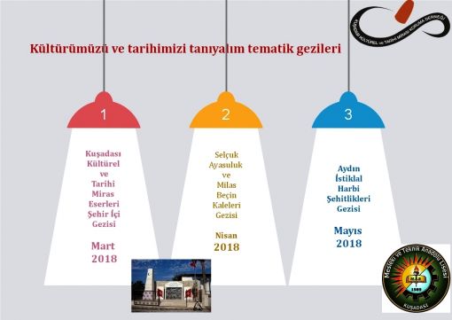 Kültürümüzü tanıyalım, tarihimizi ve kültürümüzü öğrenelim projesi 24 Mart 2018 Cumartesi günü " Kuşadası Güvercian Ada Kalesi ve Türk-İslam Eserleri Şehir içi Gezisi " ile başlıyor.