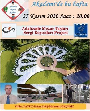 Geçtiğimiz Cuma günü yayın hayatına başlayan “ Kuşadası Digital Akademi” de bu hafta çok ilginç bir konu gündeme gelecek. Kuşadası Belediyesi ile Kuşadası Kültürel ve Tarihi Mirası Koruma Derneği ortaklığında projelendiren ve kısa bir süre sonra başlayacak olan “ Kuşadası Adalızade Mezar Taşları Sergi Reyonları Projesi “ tüm detayları ile ele alınacak. 27 Aralık 2020 Cuma günü saat 20.00 de “ Zoom “ üzerinden başlayacak programa Kuşadası Belediyesi Etüd-Proje müdürlüğünden Mimar Yıldız YAVUZ , Projenin 1. Etap sorumlusu Ege Üniversitesi Sanat Tarihi hocası Dr. Öğr. Üyesi Ertan DAŞ ve dernek başkanı rehber Mahmut ÖKÇESİZ konuşmacı olarak katılacaklar. Bu ilginç yayını takip etmek isteyenler , “ mahmutokcesiz@hotmail.com “ adresine 26 Kasım 2020 tarihine kadar e-mail göndermeleri gerekmektedir. Yayın kapasitesi 100 kişiliktir.