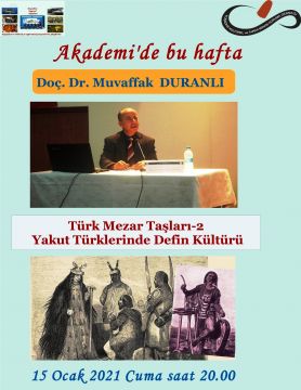 Kuşadası Digital Akademi de bu haftaki konuğumuz Ege Üniversitesi Türk Dünyası Araştırmaları Enstitüsü Öğretim üyesi sayın Doç. Dr. Muvaffak DURANLI olacaktır. Türk boyları alanında uzman bir akademisyen olan değerli hocamız bize “ Yakut (Saha) Türkleri Defin Kültürü “ nü anlatacaktır. Yayın linki ve şifresi almak için “ mahmutokcesiz@hotmail.com adresine kayıt olmanız gerekmektedir. 15 Ocak 2021 Cuma akşamı saat 20.00 de başlayacak bu ilginç konferansa katılımlarınızı bekliyoruz.
