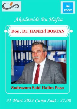 Kuşadası Digital Akademi de bu hafta, 31 Mart 2023 Cuma günü saat 21. 00 de Marmara Üniversitesi Öğretim Üyesi Doç. Dr. Hanefi BOSTAN konuğumuz olacaktır. Hanefi bey , “ Sadrazam Said Halim Paşa “adlı önemli bir konferans verecektir. Bu önemli konferansa katılmak isteyenlerin 31 Mart 2023 Cuma günü saat 18.00 kadar “ mahmutokcesiz@hotmail.com “ adresine mail gönderip kayıt olmaları gerekmektedir. Kontenjanımızın sınırlı olduğunu belirtir, acele edilmesini tavsiye ederiz. Kamuoyuna saygıyla ilan olunur.