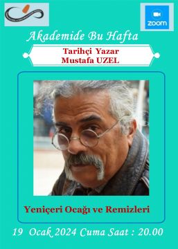 Kuşadası Digital Akademide bu hafta, 19 Ocak 2024 Cuma günü saat 20. 00 de, Tarihçi Yazar Mustafa UZEL konuğumuz olacak. Mustafa bey , “ Yeniçeri Ocağı ve Remizleri “adlı önemli bir konferans verecektir. Bu önemli konferansa katılmak isteyenlerin 19 Ocak 2024 Cuma günü saat 18.00 kadar “ mahmutokcesiz@hotmail.com “ adresine mail gönderip kayıt olmaları gerekmektedir. Kontenjanımızın sınırlı olduğunu belirtir, acele edilmesini tavsiye ederiz. Kamuoyuna saygıyla ilan olunur.