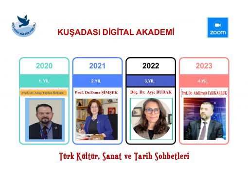2020 yılı Ekim ayında birinci yayın döneminde başladığımız “ Kuşadası Digital Akademi “ yayınlarında dört yılı geride bıraktık. 5. Dönemi ise ; 4 Ekim 2024 Cuma akşamı başlayacak ve 30 Mayıs 2025 Cuma akşamı sona erecektir. Zoom üzerinden on line olarak yapılan bu konferanslar her hafta Cuma saat 20.00 de başlamakta, bir veya bir buçuk saat sürmekte ve ülkemizin değerli akademisyenleri katılmaktadırlar. 4 yıl içinde toplam 133 konferans düzenledik. Bu yıl da 35 konferans düzenlemeyi planladık.