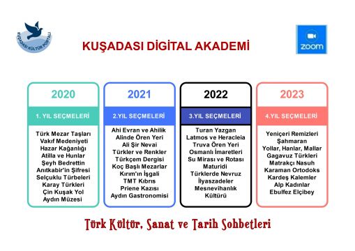 Kuşadası Digital Akademi’ye üye olmak ve TÜRK dili, kültürü, sanatı ve tarihi konularını içeren bu konferansları izlemek isteyenler ; 3 Ekim 2024 Perşembe günü saat 18.00 kadar mahmutokcesiz@hotmail.com adresine mail gönderip kayıt olmaları gerekmektedir. Saygı ile arz olunur.
