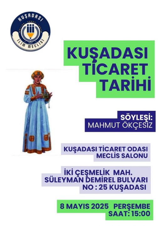 Açılış konuşmasından sonra meclis kurucu başkanı Mahmut ÖKÇESİZ tarafından KUŞADASI TİCARET TARİHİ konulu sunum yapılacaktır.