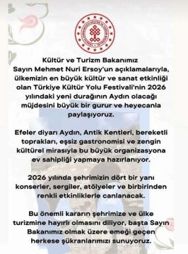 Tralleis’ten Afrodisias’a, Nysa’dan Milet’e toplam 33 antik kente ev sahipliği yapan Aydın, son beş yıldır ülkemizin değişik kentlerinde Kültür ve Turizm Bakanlığı yönetiminde 2026 yılında Türkiye’nin en büyük kültür ve sanat organizasyonlarından biri olan Türkiye Kültür Yolu Festivali’ne hazırlanıyor. Kamuoyuna duyurulan karar kentimizin tüm ilçelerinde büyük sevinç ve heyecanla karşılanırken, festivalin şehre binlerce yerli ve yabancı ziyaretçi çekerek ekonomiye büyük katkı sağlayacağını belirtiyor. 2026 yılında şehrimiz, her köşesinde ve ilçelerinde en az bir hafta boyunca “ konserler, sergiler, atölyeler, geziler, seminerler, belgesel film gösterileri, tiyatrolar, çalıştaylar ve birbirinden renkli etkinliklerle" adeta canlanacak, kültüre ve sanata doyacaktır.