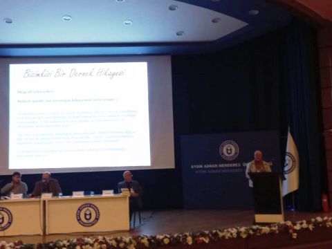 13-15 Kasım 2025 tarihlerinde Aydın Valiliği himayesinde Adnan Menderes Üniversitesi Rektörlüğü tarafından düzenlenen “ Geçmişten Geleceğe Aydın Sempozyumu” na dün katıldık. Aydın STK ları bölümünde Kuşadası’nı temsilen resmen davet edildiğimiz oturumda, 17.00-17.15 saatleri arasında “ Bizimkisi Bir Dernek Hikayesi “ adlı 14 yıllık dernek faaliyetlerimizi anlattık. Yoğun ilgi gören 14 slaytlık sunumumuz da; 6 sempozyumu, 1 çalıştayı, yayınladığımız 14 kitabı, 134 Zoom programını, seri konferansları, Ramazan sohbetlerini, tematik gezilerimizi ve belediyemiz ile birlikte açtığımız Adalızade Açık hava mezar taşları müzesini, Yörük Ali Efe amfisindeki katılımcılar hayranlıkla izlediler ve alkışlarla tebrik ettiler. Oturum sonunda katılı belgesini alarak üniversiteden ayrıldık.