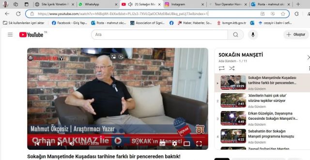 Kuşadası’nın kültürü, kültürel mirası ve tarihi ile ilgili çalışmaların ilki olan “ Sokağın Manşeti “ adlı bir çalışma başlattık. Değerli gazeteci ve televizyoncu sayın Orhan SALKINAZ beyin moderatörlüğünde kendimizi kısaca tanıtmaya çalıştık. Bu güzel çalışma için Gündem TV sahipleri Nesim KAHRAMAN ve İsmail DİLŞEN beylere bize bu fırsatı verdikleri için çok teşekkür ederiz. Önümüzdeki günlerde bu çalışmamızda kentimizin tarihini kronolojik bir sırayla anlatacağız. Sokağın manşetinin ilk konuşma linki aşağıdadır ve youtube’ dan izleyebilirsiniz.