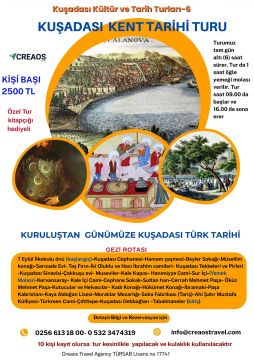 İşte sadece bir kaç örnek cümleyle özetini verdiğimiz, altı saatlik (6) saatlik tam gün sürecek gezide; hiç bilinmeyen Kuşadası Türk Tarihini, kentimizin Türk devlet adamlarını, asırlarca İstanbul’un iaşesini temini, Kuşadası külliyelerini , Türk vakıflarını ve son Osmanlı idarecilerinin ilginç hikayelerini öğreneceksiniz.